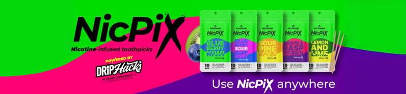 Nicpix have built a reputation for their convenient, travel-friendly packaging and memorable flavours that add a sense of cleanliness and refreshment when using their toothpicks. Brought about by a partnership with Drip Hacks and The Flavour Smiths, Nicpix is a perfect combination of product know-how and expert flavour crafting! Made with natural wood as their base, Nicpix are designed to perfectly absorb nicotine and release it just as effectively but is also kind to the gums when chewed too. This careful infusion ensures an even nicotine spread throughout each toothpick, guaranteeing a reliable experience with each use.