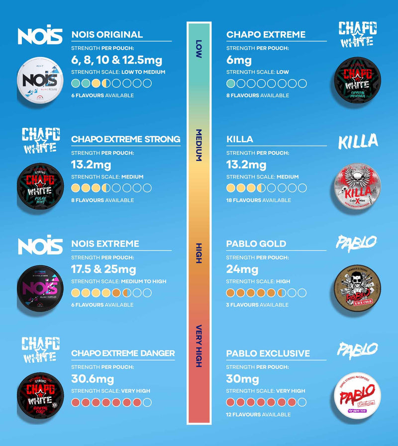 Nicotine pouches have gained popularity among popular footballers like Jamie Vardy which according to them "enhances their performance" additionally its an easier way to consume nicotine in places where you can't. Simply slip a pouch in between your lips at the airport, pub, club or in public areas where smoking/vaping is banned outright. As the nicotine is pure or synthetic they contain less toxins compared to pure tobacco used in cigarettes. Understanding the strengths and proper use of nicotine pouches is essential for those considering them as an alternative to traditional nicotine products. While they offer a promising option for reducing or stopping smoking, users should approach these products with caution due to the risk of addiction and other health impacts. Always consult product guidelines and consider professional advice to make an informed choice.